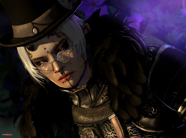 Engine Room has reached its half way point guys, and theres still plenty of time to knab some really awesome goodies. Like AsteroidBox's Albian shirt. I had the amazing privilege to watch Leith in action as he created this amazing attire. So many details and so many options you are spoiled for choice!. The next item is Reliquary's Outlaw Tea set which is so so neat!. This comes with its own animations, and triggers where you can pour yourself a new tea, splash hot tea in an enemies face, and do a casual sip and stir with the spoon. Its glorious!. We have a very fetching top hat by Q&C, lovely detailed specs by Air annnd some very cool cog eyes from Lilithium - see close up below!.